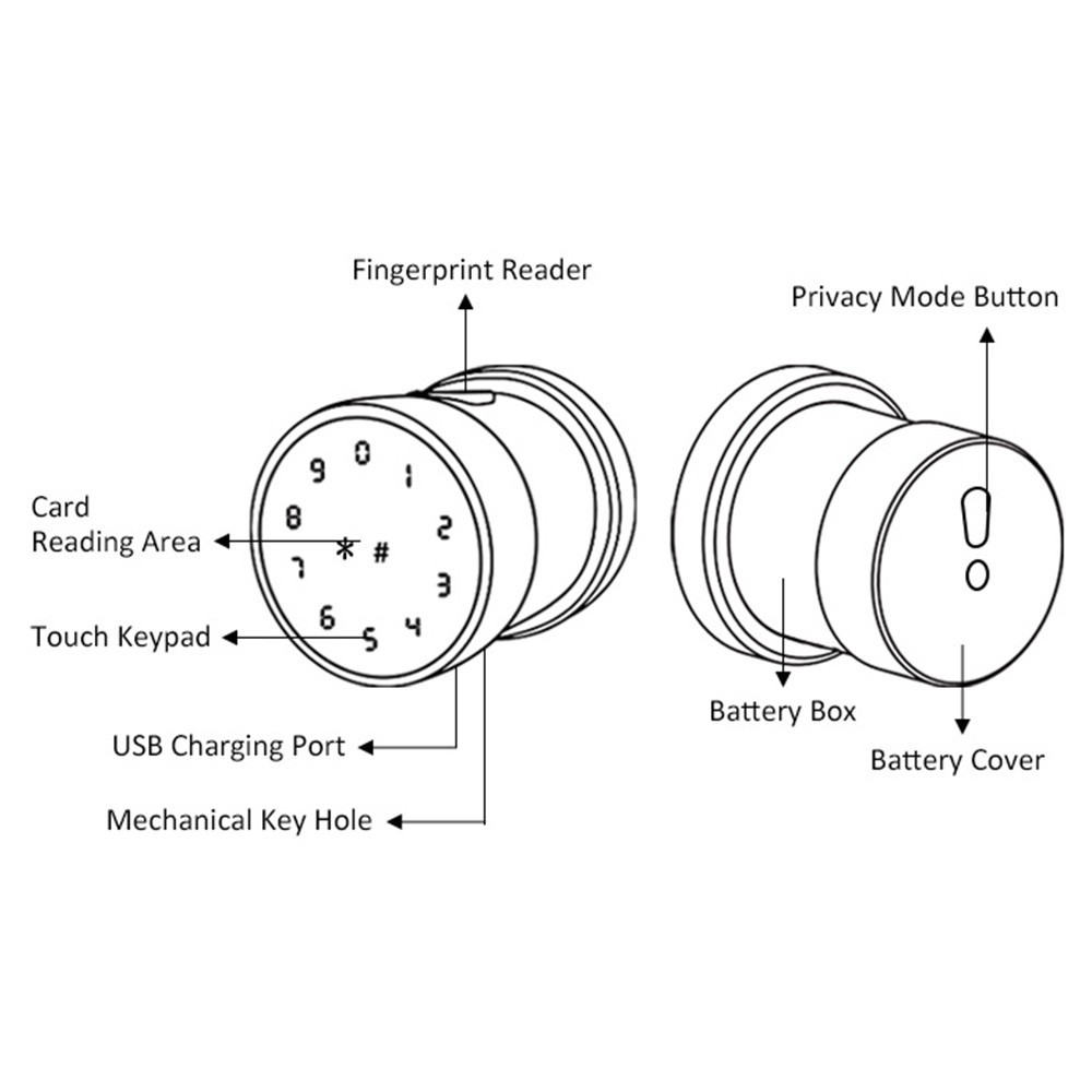 | App Name | Tuya App or TTLock App (choose one) | Unlock Method | APP, Fingerprint, Card, Password, Wristban, Mechanical key |